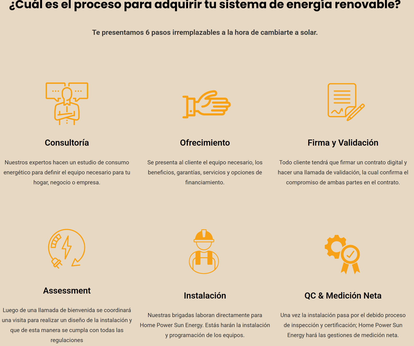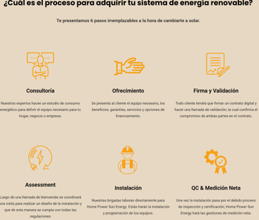 Home Power evalúa el consumo eléctrico y el techo para diseñar un sistema personalizado, que se instala en 1-3 días. Una vez aprobado por LUMA (medición neta), inicia la generación de energía solar, reduciendo facturas hasta un 80% sin más pagos mensuales al proveedor. El cliente genera su propia electricidad limpia, con opción de baterías como Tesla Powerwall para apagones.