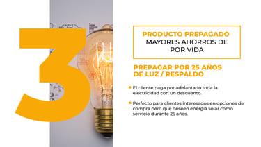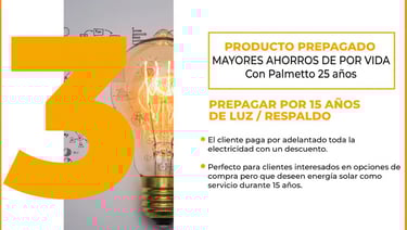El plan prepagado de Home Power Sun Energy permite a los clientes pagar de una vez por el sistema solar, eliminando pagos mensuales a LUMA tras la instalación y medición neta. No requiere pago inicial (cero pronto), verificación de ingresos ni afecta el crédito, con pagos comenzando después de la activación. Incluye 15 años de garantía en equipo y producción, seguro completo y mantenimiento incluido.